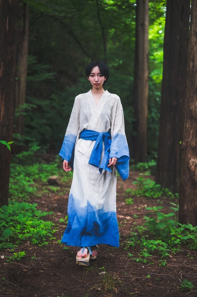 履いて、袖を通し、帯をしめるだけで簡単に着こなせる浴衣。 日常でもカジュアルにおしゃれで、 それでいて主張しすぎず、飾らない古風な美に あなたの色を纏ってみませんか? 浴衣の美しさはそのままに パンツ仕様になった新しい着物 上下一体型のつなぎになっているため 座ったり、走ったり 着物では制限されてしまう動作 裾がはだけてしまうことも 気にすることなく、 性別や年齢、体型や場所も選ばず、気軽に着ることができるユニセックス着物。 ・お手洗い方法 お手洗い方法は袴と同様に片方の裾からたくしあげるようにして用を足す事が可能です。 そちらも難しいと言う方は上下の別れたセパレートタイプもご案内できます。 そして背面が開閉できるタイプもリリース予定です。 腰紐 +3,500円 生地は100%天然素材です。 春夏生地でのお仕立てと 秋冬生地でのお仕立てがございます。 <カラー> お色は幅広いカラーサンプルの中からお選びいただけます。 <サイズについて> ・身長(または希望着丈寸法) 着丈は首の背中心(襟の付け位置)から希望の着丈仕上がり寸法までの数値になります。 計測が難しい場合はワンピースなどから測っていただくと簡単です。 身長から標準の数値にお作りする事も可能ですが 丈のサイズにご希望がある場合は計測をお願い致します。 ・裄丈 裄丈は首の背中心から希望の袖仕上がり寸法までの数値になります。 計測が難しい場合はシャツなどを参考に測っていただくと簡単です。 ・染色について 染色は天然由来の染料を調合して染色しておりますのでお好きな色をお選びいただけます。 場合により染め上がる色が多少異なる事がございます。 まだらやむらは偶発的にできてしまう場合もございますのでご了承をくださいませ。 天然由来のため多少の色落ちは自然な事ですのでご了承をください。 カラーオプション +4,000円 ・まだら 濃淡でまだら模様を仕上げます ・グラデーション 袖や裾にグラデーションを追加 ・2色追加 色を2〜3色で仕上げます ご自宅でお洗濯する場合には必ず1〜2回は単体でお洗濯をしてください。 お洗濯後は部屋干しで日光を避けて保管してください。 こちらは受注生産になります オーダーから2ヶ月ほど制作にお時間を頂いております。 <配送について> 仕上がり後はヤマト運輸(着払い)にてお届けになります。 <必読事項> この作品は受注生産となっており、写真と多少異なる箇所がある場合ざございますのでご了承ください。 この作品は全て手作業で仕上げています。 既製品のような出来栄えでない場合がございますのでよろしくお願いいたします。 気になる方はトラブル防止のため、ご購入をお控えください。 ノークレームノーリターンでお願いいたします。