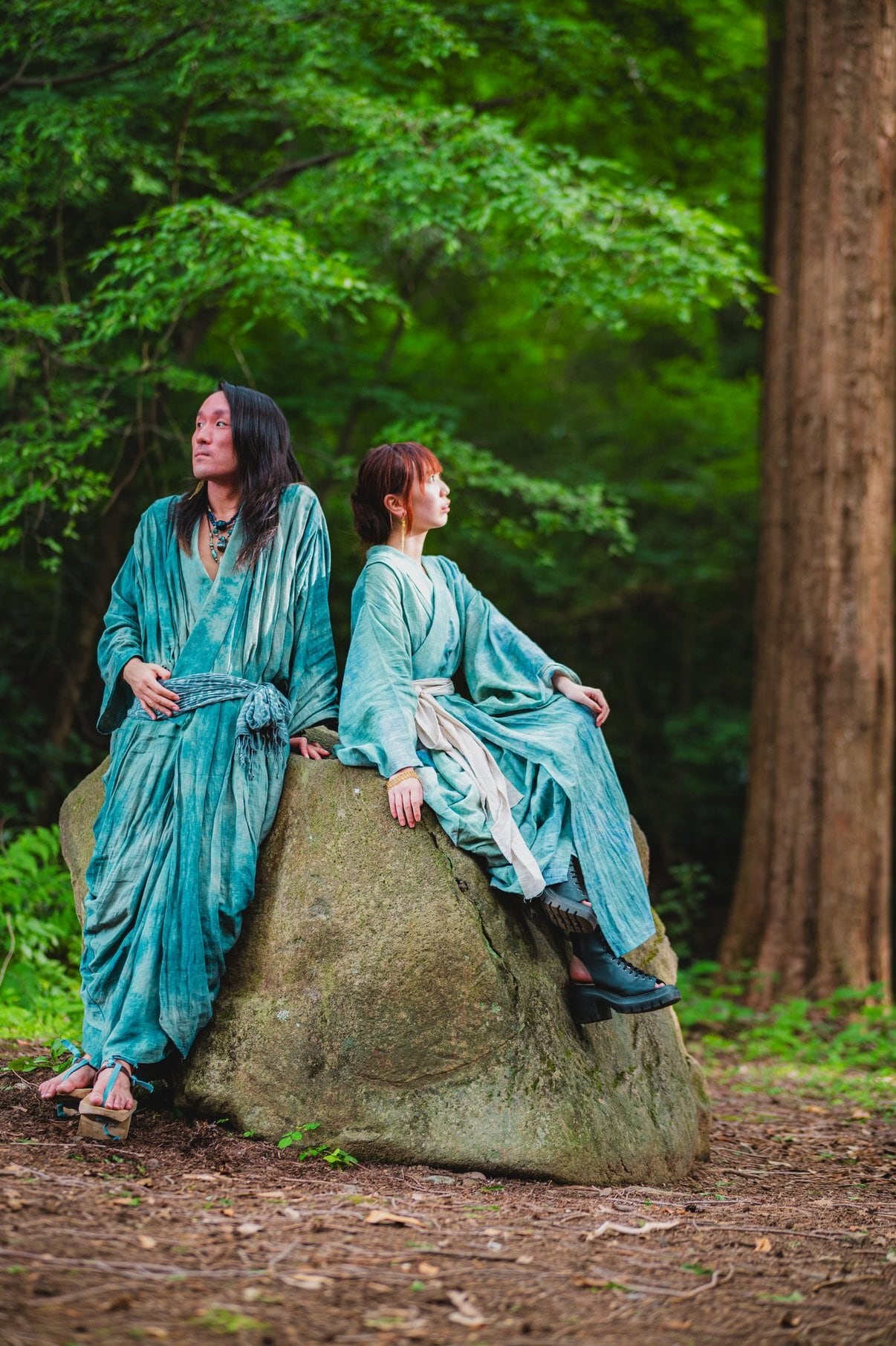 パンツ仕様の上下一体型で一着にふんわりとしたボリューム感を持たせた、日本の持つ神秘性を宿したような一着です。