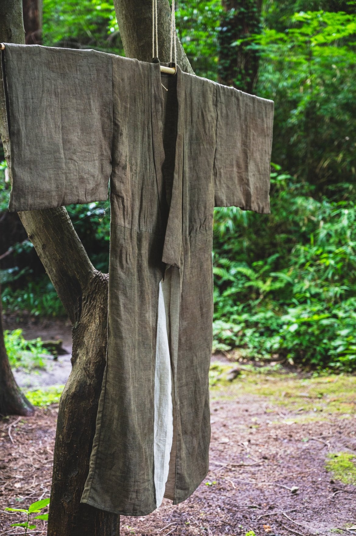 お手洗い方法は袴と同様に片方の裾からたくしあげるようにして用を足す事が可能です。